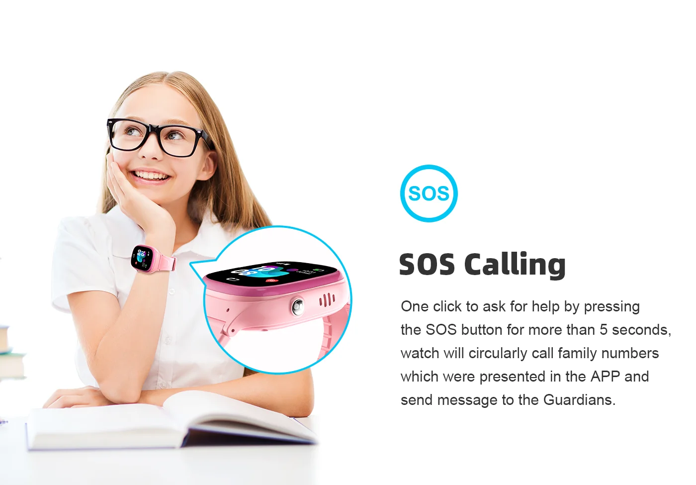 Kids can press SOS or family number button to call you!